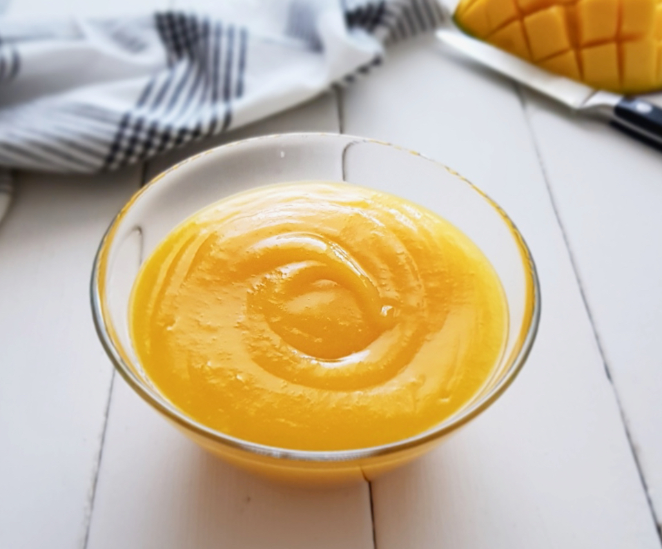 350 g puré de mango (lo haremos con 2 mangos hermositos)