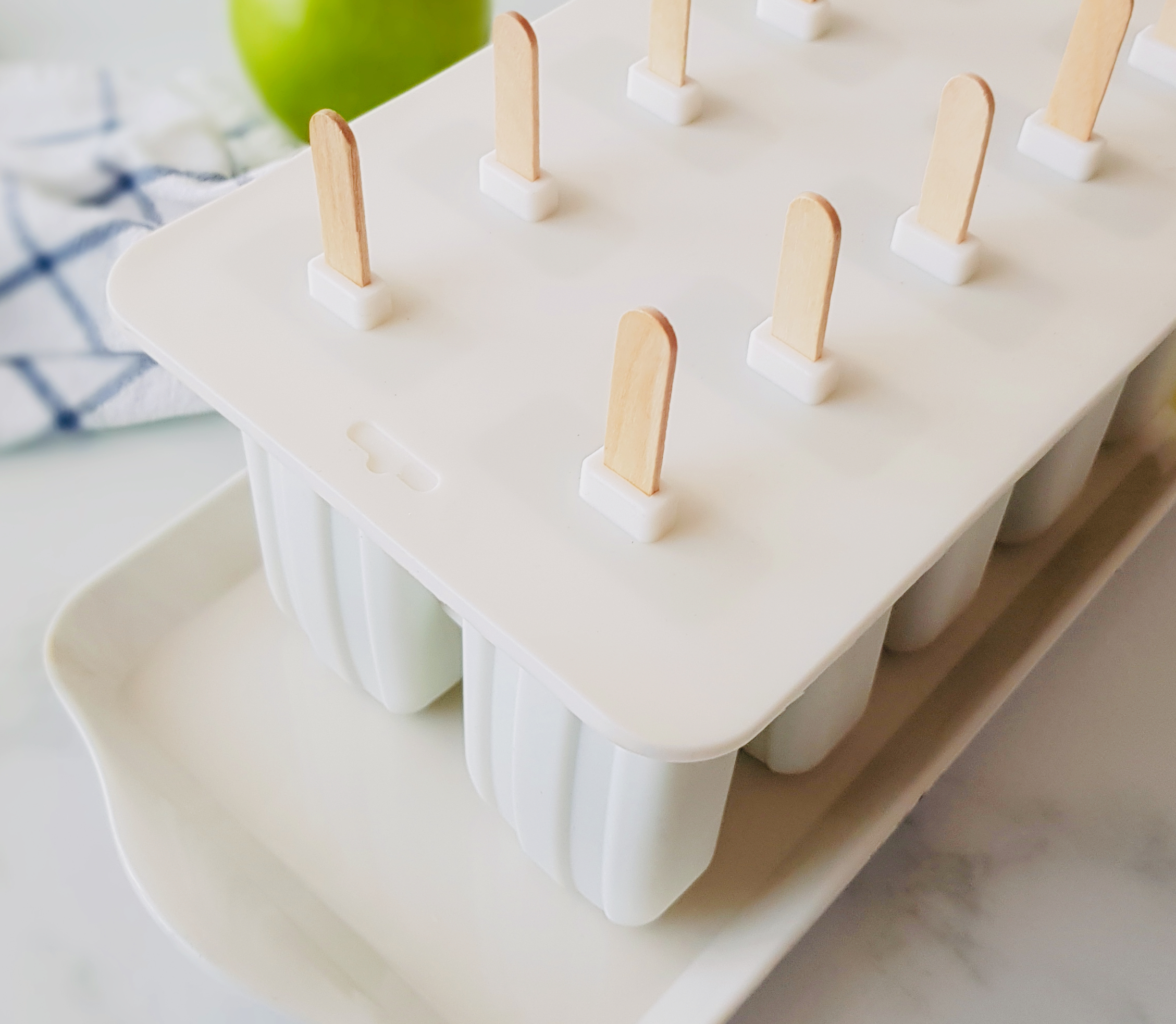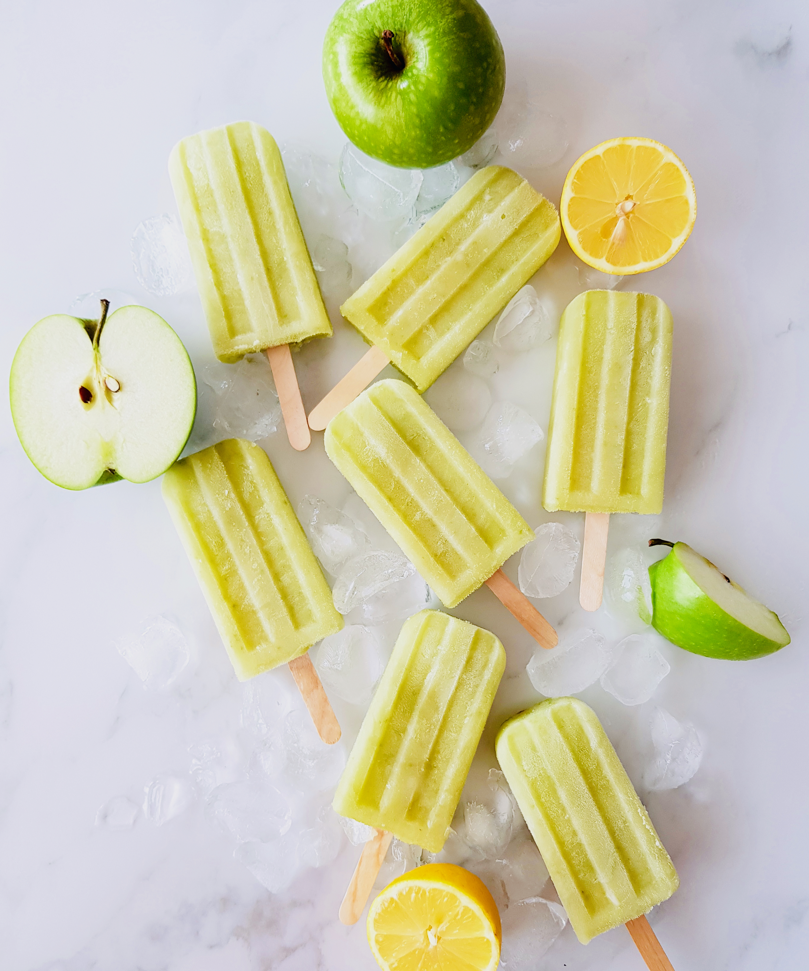 Así que para ir trampeando este calor sofocante hoy os traigo unos deliciosos y refrescantes polos de hielo elaborados con manzana verde. Son muy sencillos de hacer pues tan solo necesitamos fruta y almíbar que va a ayudar a suavizar la textura para que al morder no nos encontramos con un bloque de hielo, además de que van a aportarle el dulzor justo para que estén ricos ricos. Y quiero compartir con vosotros la fórmula secreta que guardo como oro en paño para que nuestros polos de frutas sean un éxito. No es mía, la encontré a base de buscar información, la internete lo sabe todo. Consiste en utilizar el 63% del peso del puré de fruta en almíbar. Podemos variar un poco la cantidad pero hemos de tener en cuenta que dependiendo de la cantidad de almíbar que añadamos el grado de congelación no será el mismo. Es decir, si añadimos menos almíbar nuestros polos serán más duros y si por el contrario utilizamos más corremos el riesgo de que no lleguen a congelar correctamente. Por eso yo siempre sigo esta fórmula que no falla y quedan divinos con cualquier tipo de fruta. Hacedme caso.