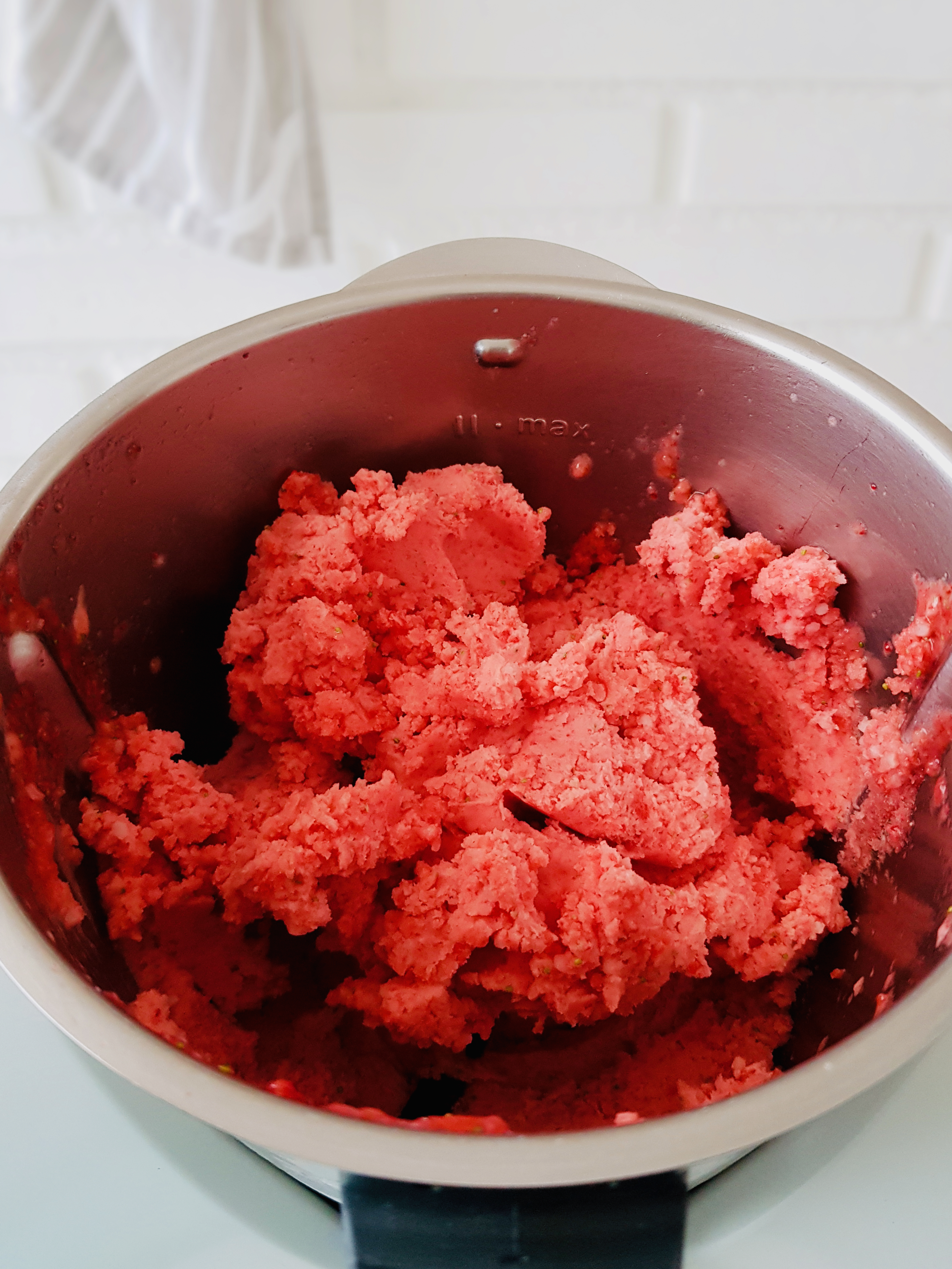 Y trituramos a máxima potencia hasta que no queden trozos. Dependiendo de la potencia de nuestra máquina lo tendremos hecho en más o menos tiempo, pero vamos…. que no nos llevará más de unos minutos. Veréis que en un principio se forma una especie de granizado.