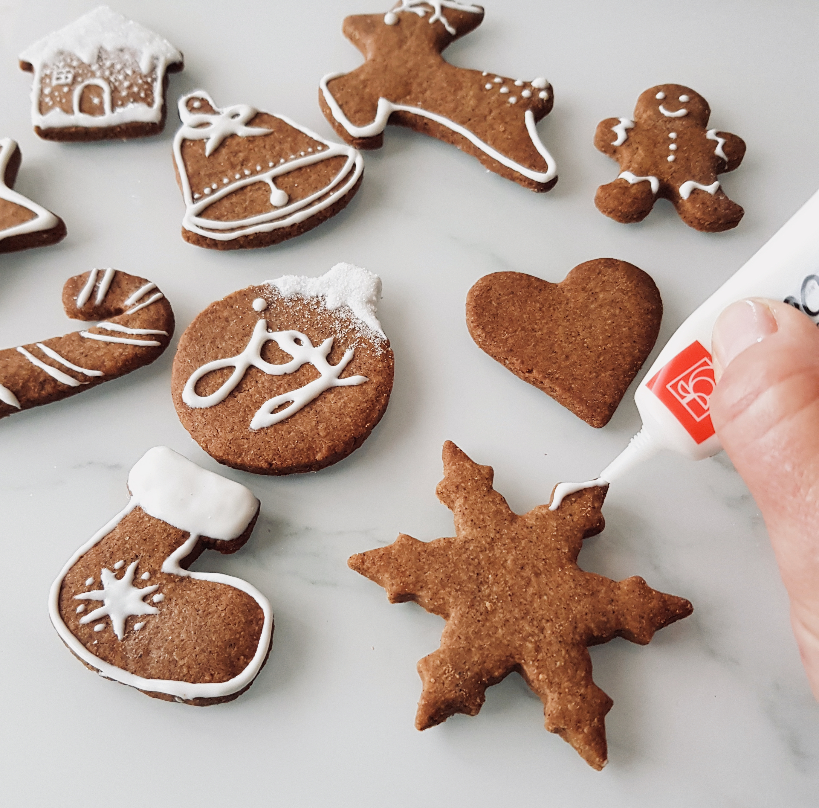 Así que aquí os traigo la receta de mis galletas de jengibre. Y digo mis galletas porque con respecto a la receta original he hecho unas variaciones en los ingredientes, por ejemplo, he reducido la cantidad de azúcar, no he añadido miel ni melaza y he sustituido parte de la harina por almendra molida. El resultado son unas galletas tiernas, delicadas y con un sabor especiado brutal. Son de aquellas galletas que no puedes parar de comer porque te enganchan. Madre mía qué peligro tienen!!! En casa no faltan ninguna Navidad, aunque normalmente no las decoro porque llevan su ratito y no siempre dispongo de tiempo, pero esta vez la ocasión lo merecía.