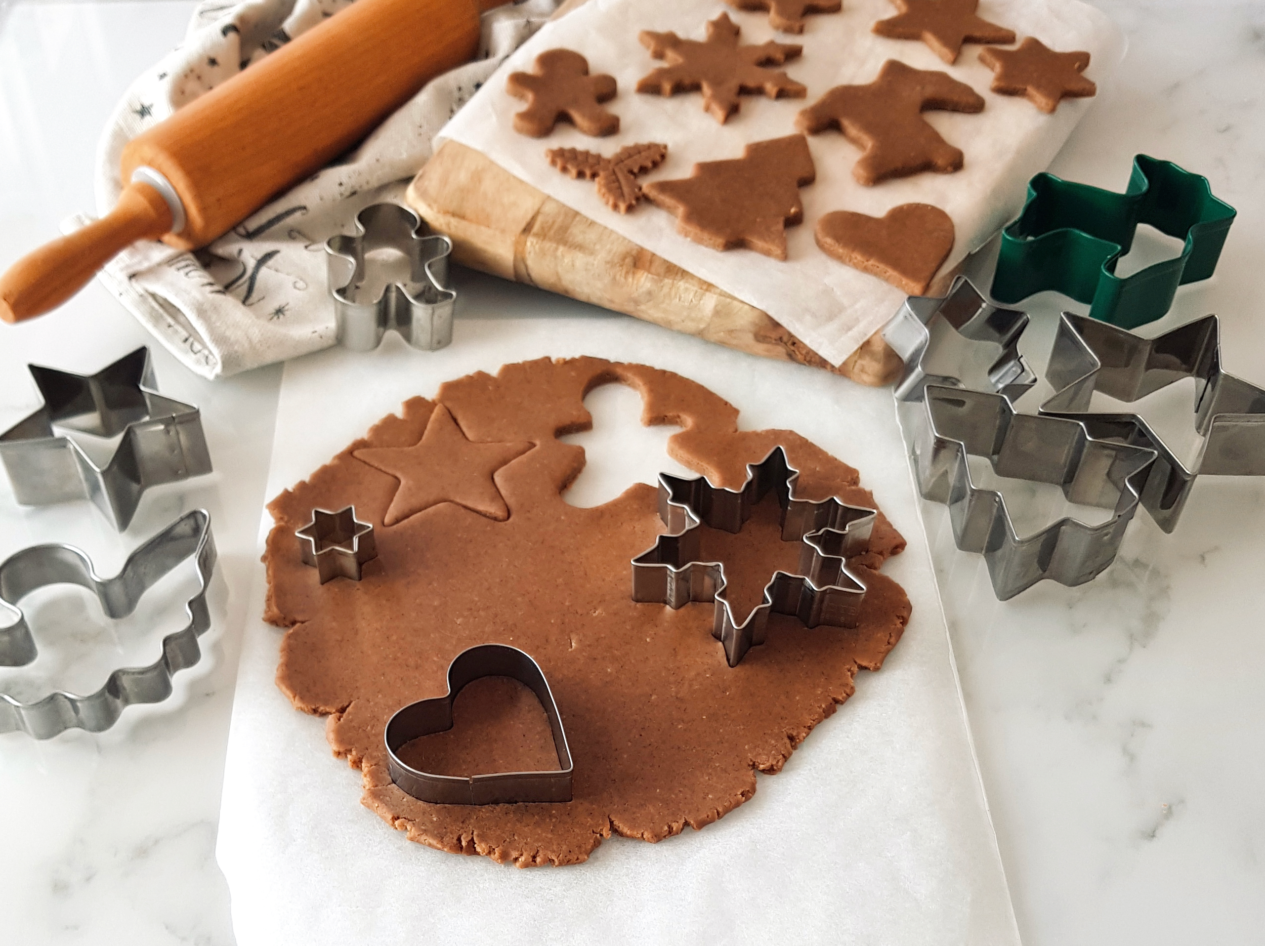 Dejamos enfriar en la nevera 1/2 h para que endurezca y así poder cortar las galletas con facilidad. Les damos forma con los cortadores.