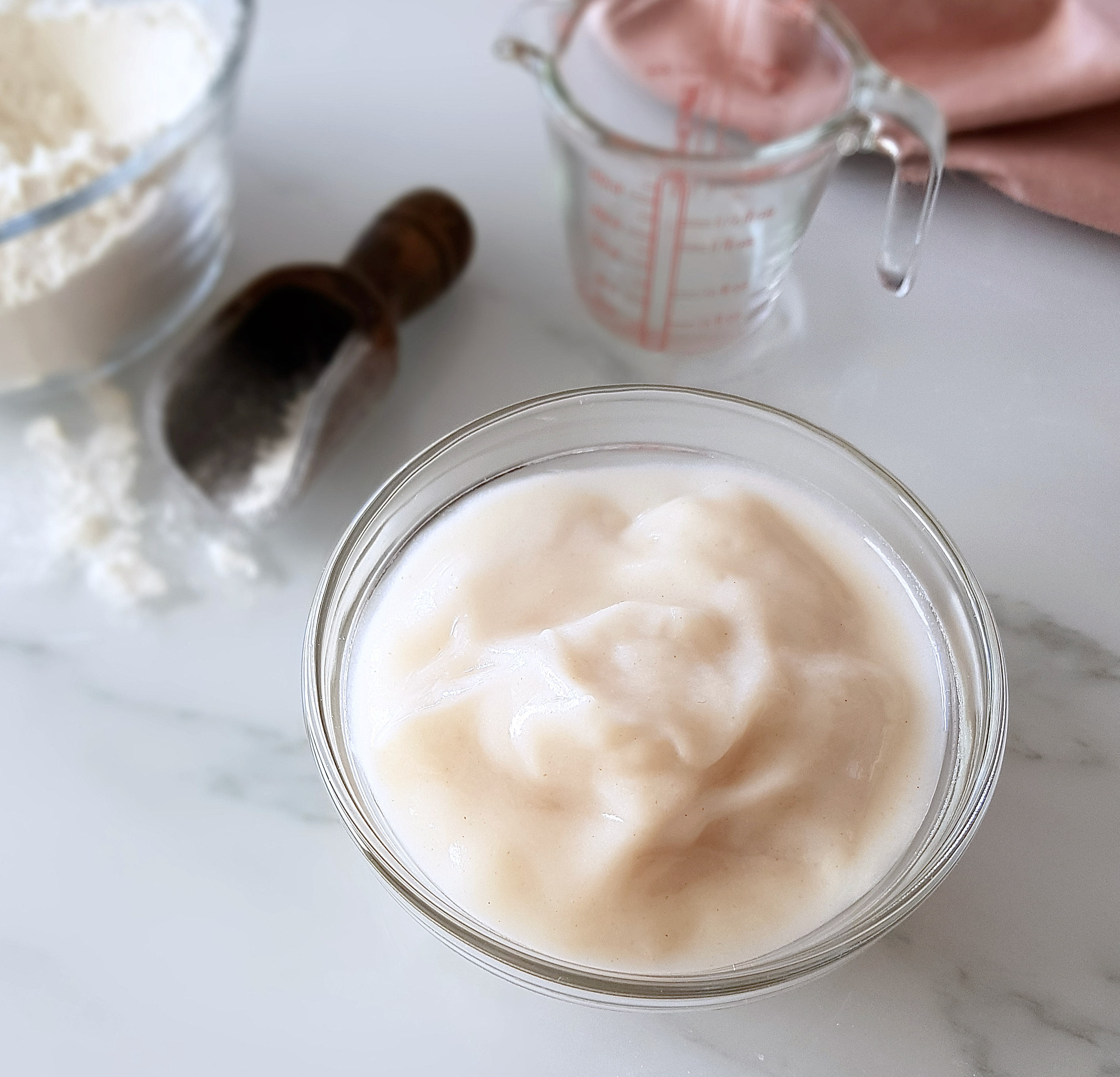 *Para hacer el tang zhong normalmente se utiliza entre un 10-20% del total de la harina de la receta y en cuanto al líquido la proporción habitual es la de 5:1. Por ejemplo, en el caso de estas berlinas, hemos utilizado 20 g del total de la harina y para calcular la cantidad de líquido hemos multiplicado 5 x 20 g= 100 g. Así pues: 20 g harina y 100 g de agua.