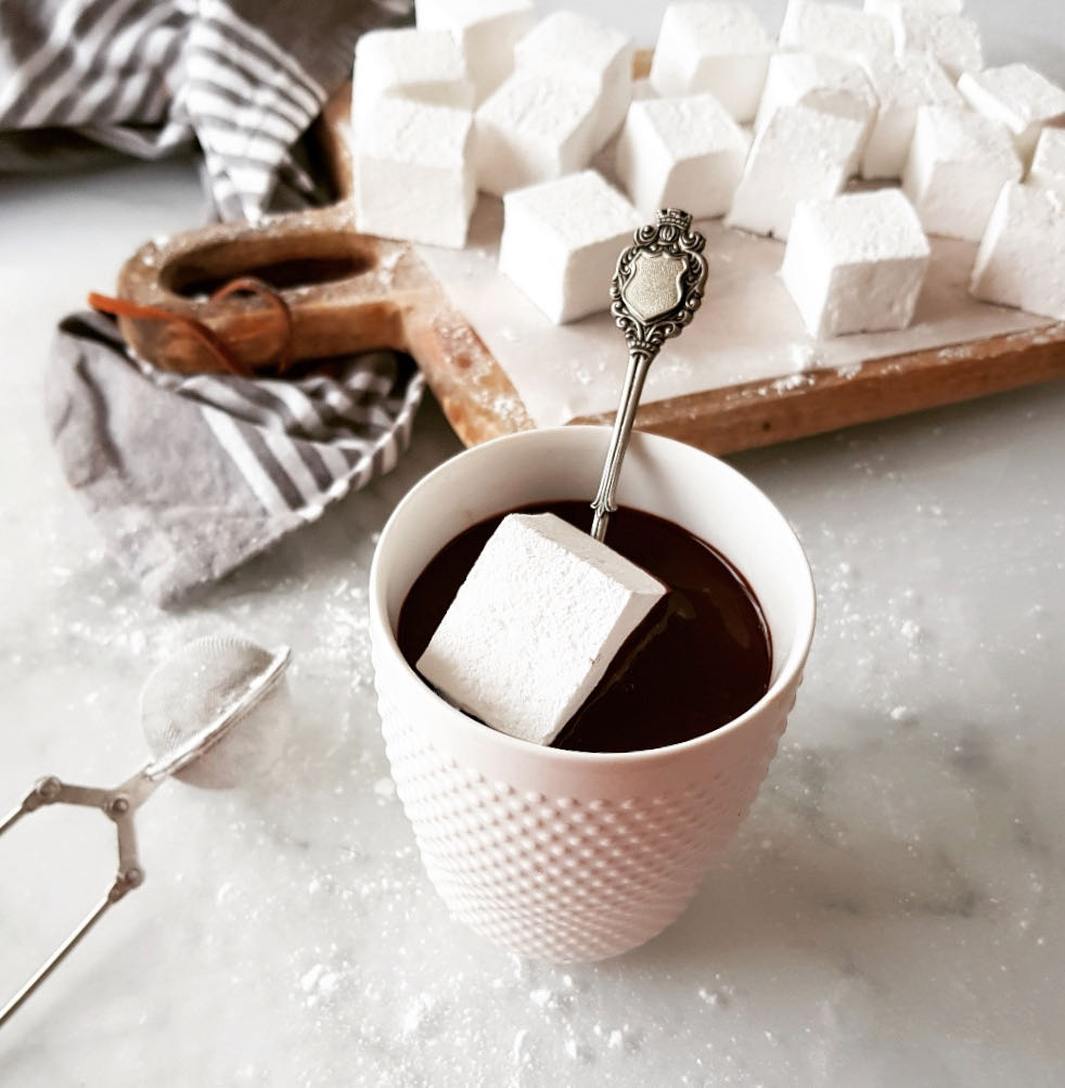 Como aprendiz autodidacta constante que soy, estuve trasteando por la red y descubrí que estas golosinas esponjosas, acolchadas y etéreas son más fáciles de hacer de lo que jamás hubiera imaginado, en serio. Tan solo se necesitan tres ingredientes: agua, azúcar y gelatina. El secreto para lograr esa textura tan particular está en trabajarlos de manera adecuada hasta el punto de lograr una pasta que una vez gelificada, se divide en porciones y se rebozan ligeramente en una mezcla a partes iguales de azúcar glass y maicena para que no se peguen entre ellas. Si utilizamos solo azúcar glass para sellarlas es muy probable que sea absorbido y resulten pegajosas.