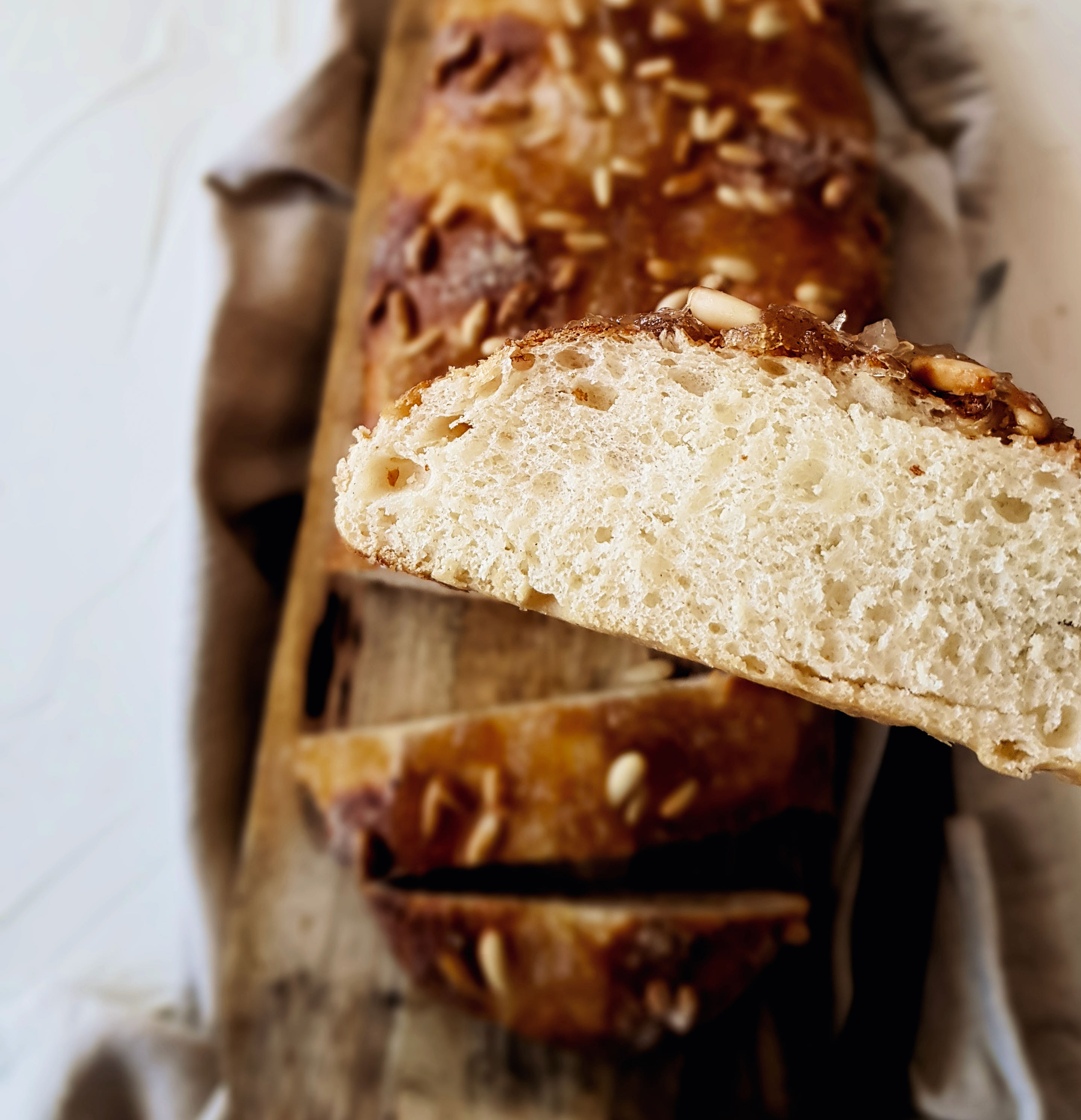 Mirar qué miga, la foto no le hace justicia, pero os garantizo que está impresionante. Tierna, esponjosa, suavecita… y dura tierna varios días, siempre y cuando la conservemos en recipiente hermético o envuelta en film. Si os gusta con más cabello de ángel, tan fácil como abrirla por la mitad y rellenarla.