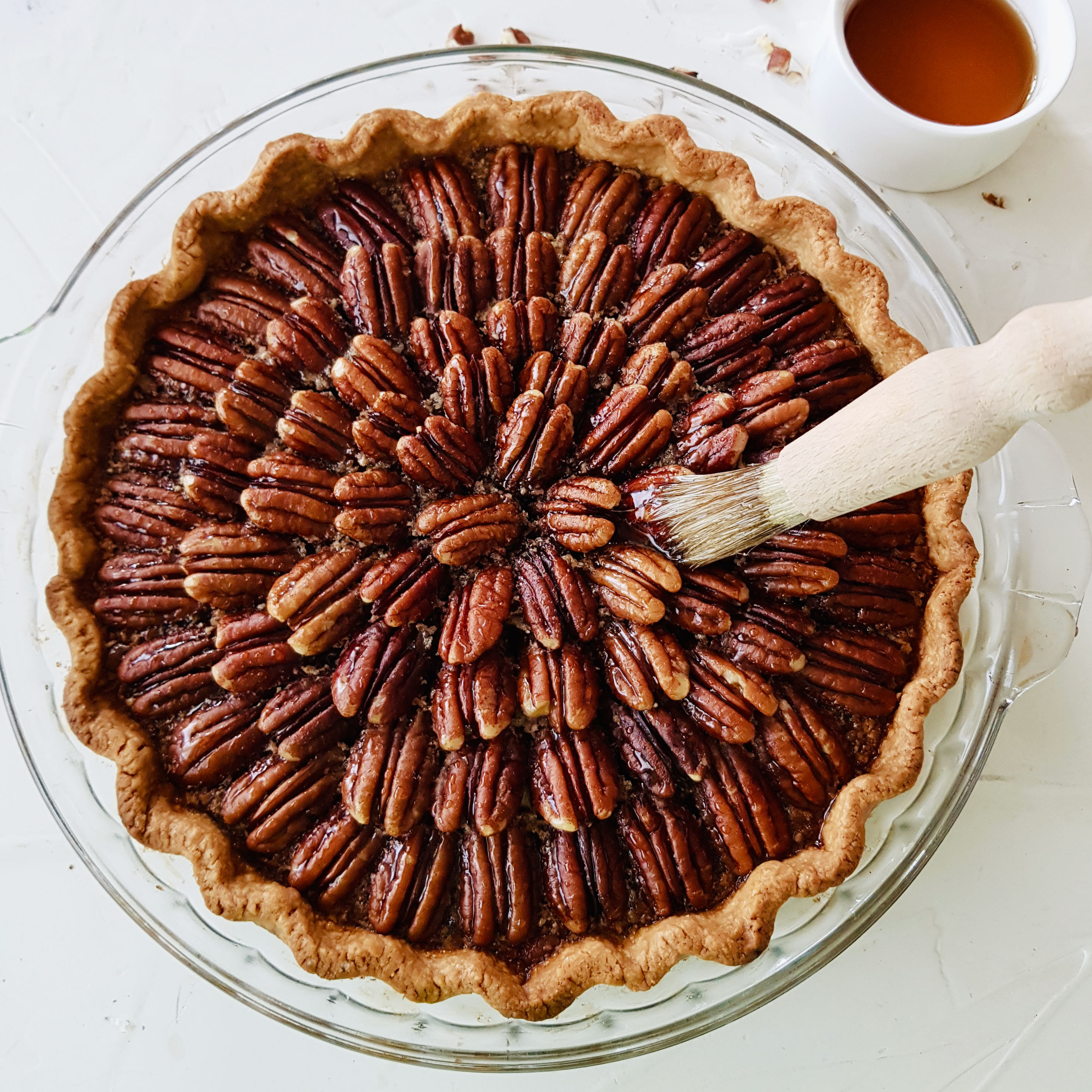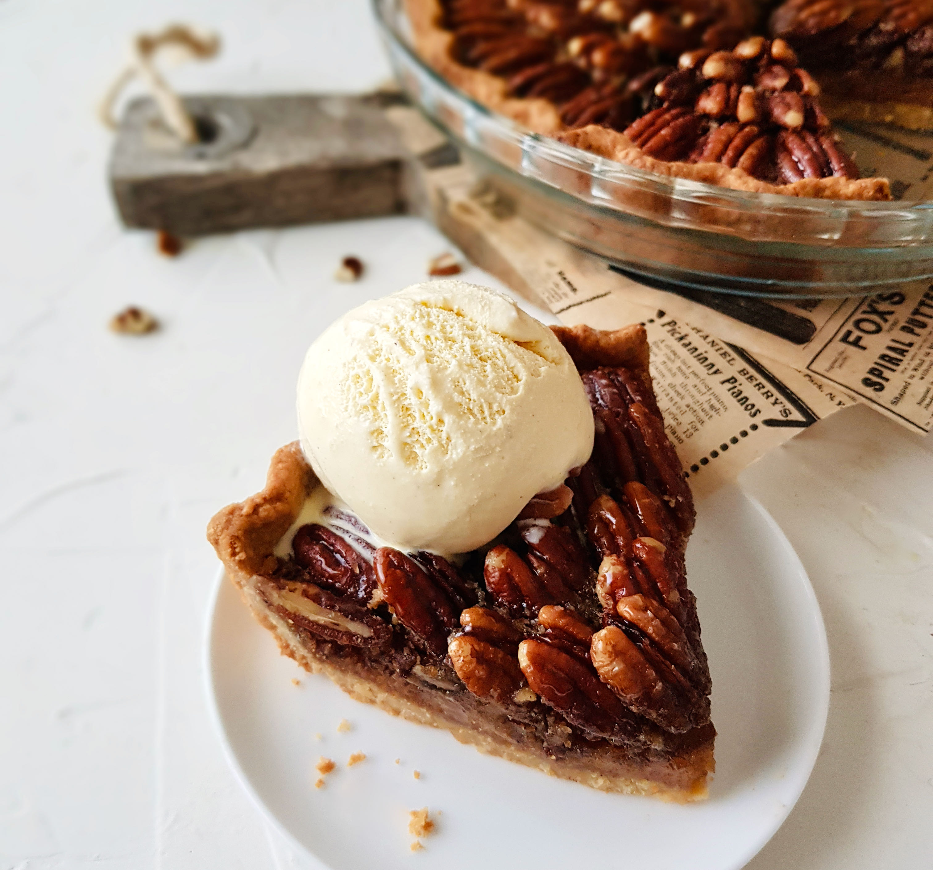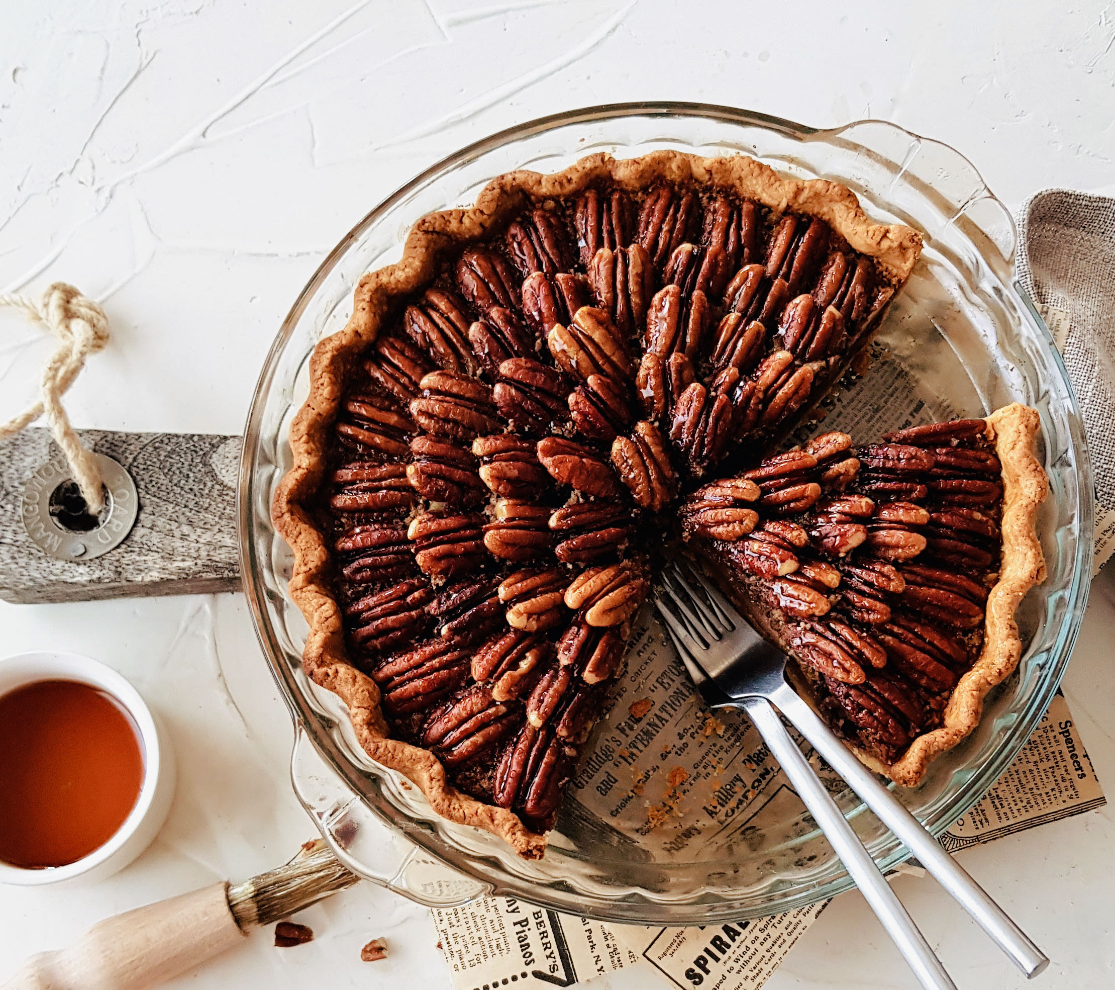 En fin, que no os voy a dar más la peta, todos sabemos cómo están las cosas. Podría seguir hablando del tema porque hay para rato pero hoy vengo a hablaros de una de las tartas que suelen prepararse para endulzar esas cenas de Acción de Gracias. Se trata de la tarta de nueces pecanas. Deliciosa toda ella, pero ligth, lo que se dice ligth pues como que no lo es y eso que no le vamos a añadir azúcar al relleno pues para mi gusto no le hace falta, que la receta original lleva toneladas…. Y digo yo…. estos americanos deben tener un estómago a prueba de bomba no? porque…. si después de meterse entre pecho y espalda una buena porción de pavo asado con su relleno de castañas, piñones, manzana, carne picada…. acompañado de salsa de arándanos rojos y puré de patata, más su correspondiente guarnición de verduritas y hortalizas varias, panecillos de maíz..… sin olvidarnos de los vinos, la sidra de manzana, el ponche de huevo…. ufff que estrés…. no perdonan los postres entre los que se encuentran la tarta de manzana, la de calabaza y la de nueces pecanas, xDios… yo creo que si me como todo eso, me tienen que ingresar, así directamente, sin pasar por la casilla de salida…. y eso que tengo un buen saque! ahajjah 😉