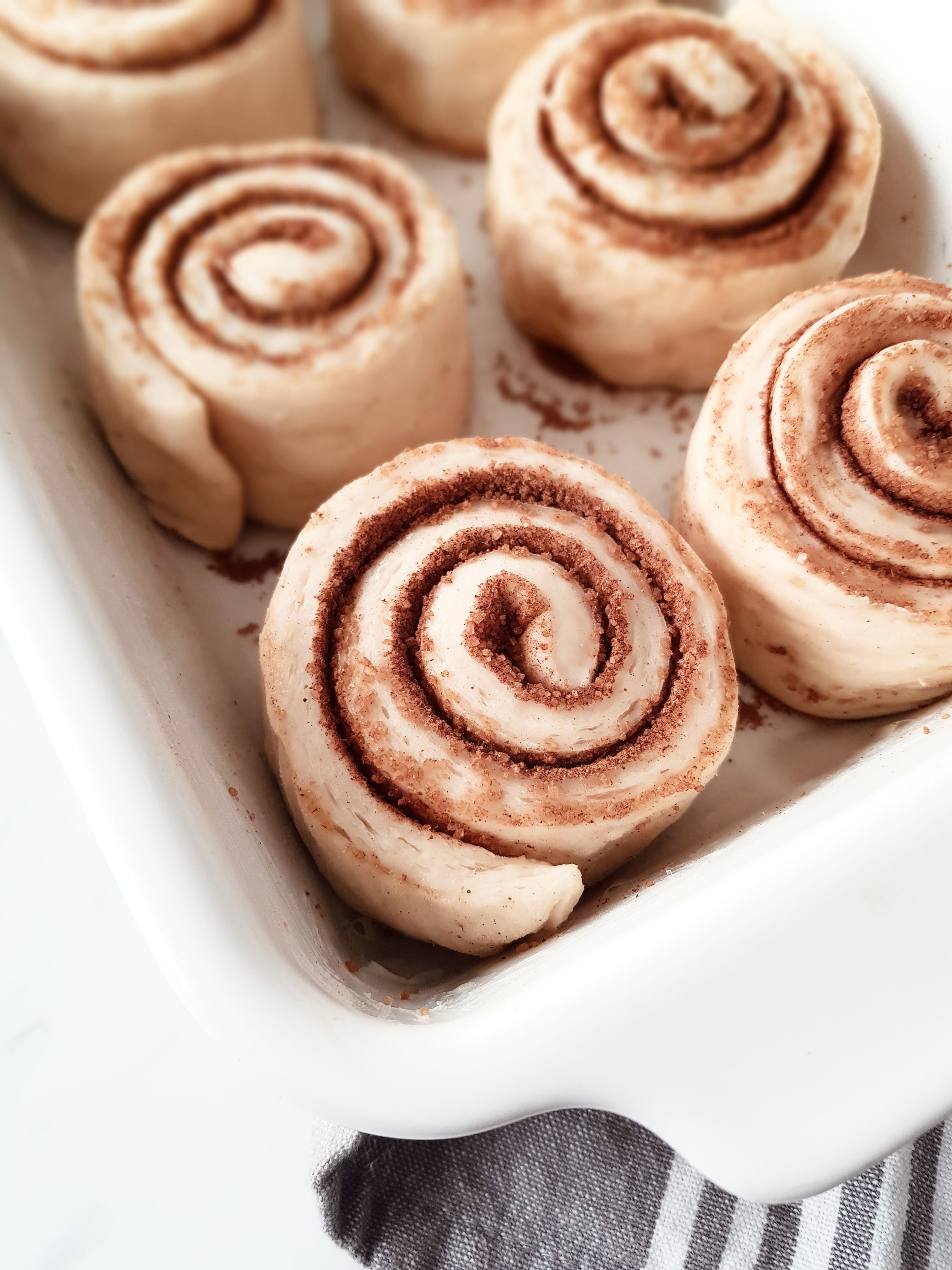 Estos ingredientes son para 12 rollos. En mi bandeja de 23 x 32 cm solo he podido poner 6, el resto los he puesto en otra.