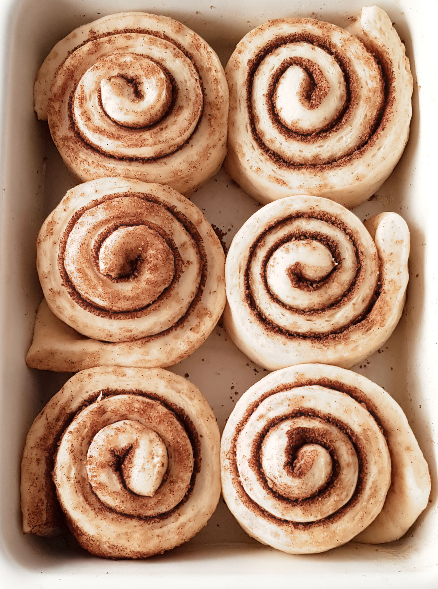 *Si queremos tomarlos para desayunar, tenemos la opción de dejarlos enrollados en su bandeja la noche anterior, tapados con film y dejar que hagan ese último levado lentamente en la nevera. Al día siguiente, retiramos y horneamos. A la pregunta de si es necesario retirarlos con tiempo suficiente para que se templen antes de meternos en el horno…. mi respuesta es que todo va a depender de la temperatura ambiente. Es decir, si hace frío deberíamos retirarlos de la nevera un rato antes, como una 1/2 horita…. Pero si hace mucho calor no, ya que corremos el riesgo de que el levado se active de nuevo y sobrefermente la masa dando como resultado una miga hueca nada apetecible. Mientras se precalienta el horno se templarán.