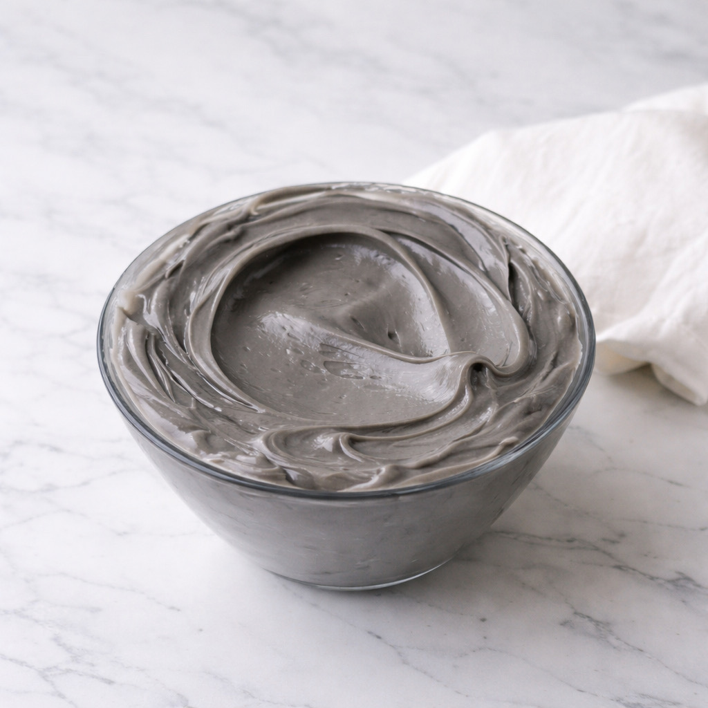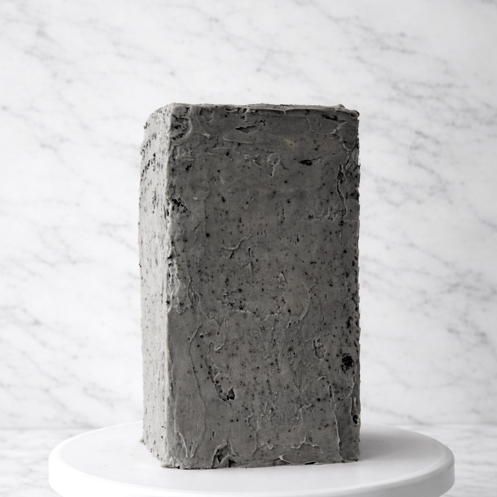 La última preparación que dejaremos hecha la noche anterior es la ganache de cobertura. Para ello vamos a trocear el chocolate bien pequeñito. Calentamos la nata y cuando alcance el punto de ebullición retiramos del fuego y vertemos sobre el chocolate. Dejamos reposar 1 minuto y a continuación removemos hasta lograr una crema sedosa. Si quedan grumos, podemos usar una batidora de mano (turmix) manteniéndola siempre sumergida para no meter aire. Añadimos una pizca de colorante negro para lograr el color gris. Añadimos un poquito y si es necesario ponemos un poco más hasta conseguir el color deseado. Tened en cuenta que con el reposo la tonalidad sube. Si nos pasamos no podremos arreglarlo. Cubrimos con film a piel para evitar que se forme costra y dejamos reposar a temperatura ambiente toda la noche.